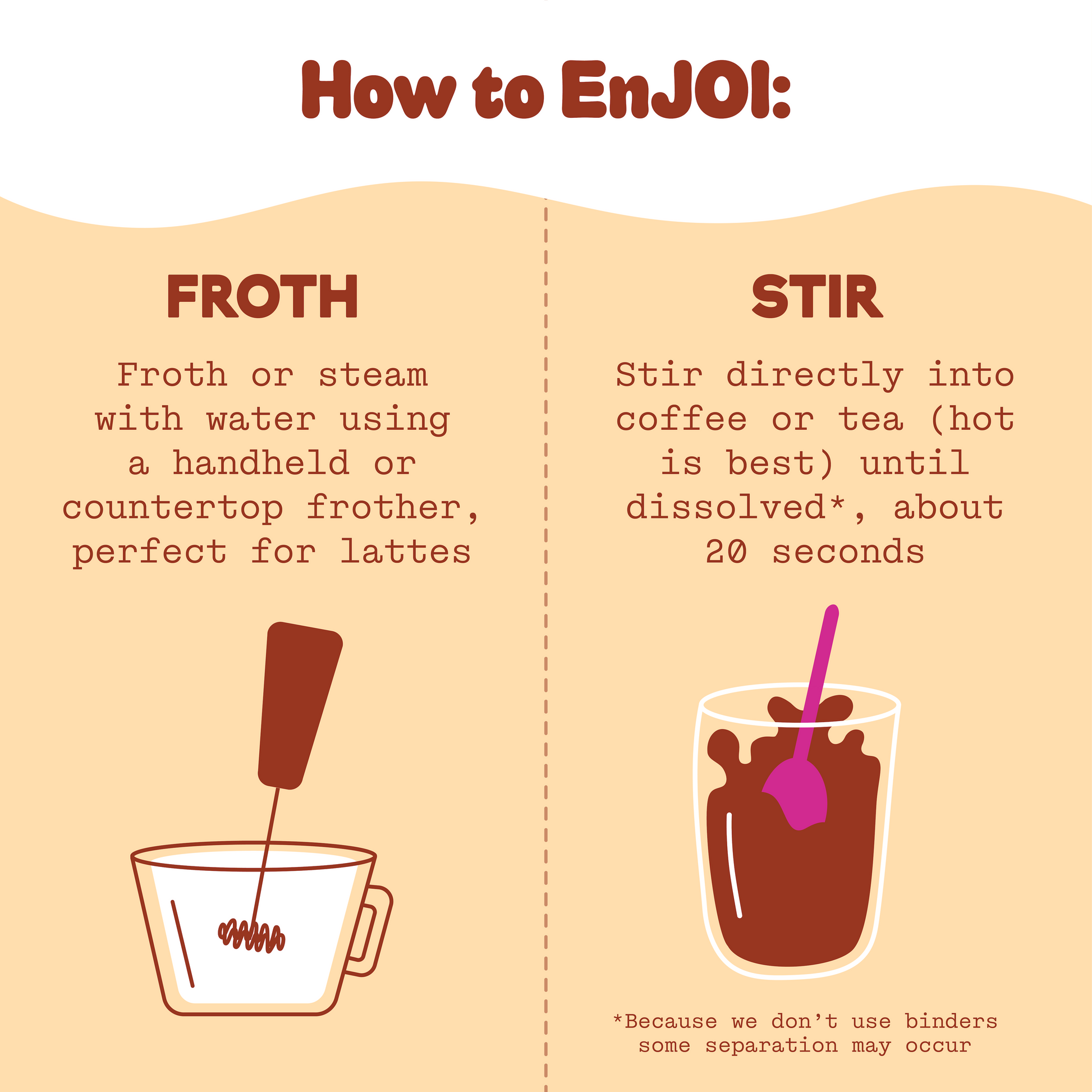 Best when mixed with hot liquids. Stir or blend for at least 20 seconds. Separation is natural.